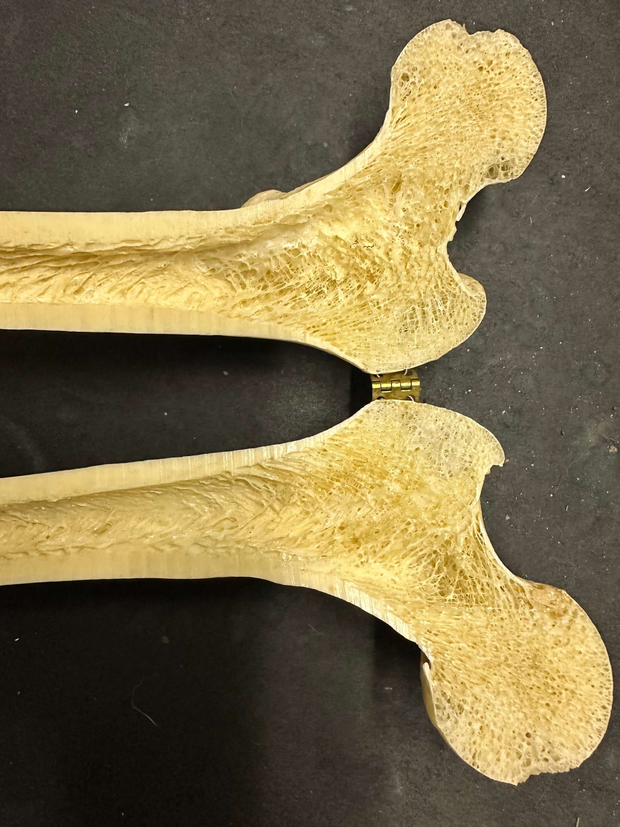 Pass the test. And they figure, you know, that's why you're the teacher, right? And it into a lot of them, I think, would be impertinent. It's sometimes it might be. Why are you teaching me this? It's it's kind of not a great question — from you, it’s a great question. From students, I don't necessarily need that question all the time. All right. So anyway, in my Darwinian medicine class, the focus of that class is to compare how we live today with how we used to live mostly as hunter gatherers, how we evolved, what, what, how our bodies and minds evolved, and the difference between our, you know, cubicle living, fast food eating reality today. And one of the real differences is osteoporosis. As I was mentioning, hunter gatherers do not have this problem. Modern humans do. And so it's fun to look at what those differences are and why we might get into it. So first of all, what causes osteoporosis? Osteoporosis is a thinning of the bone, particularly the the structural fibers that are sort of like the the cables of a bridge that hold everything together that support the bone when they thin they can be replaced. But once it fiber has been eliminated, it can no longer be replaced. And so you go from a somewhat porous fibrous inside of a bone, particularly at the ends, basically at the joints, to something that has lots of holes in it because it's lost those fibers. The fibers no longer cross that space.