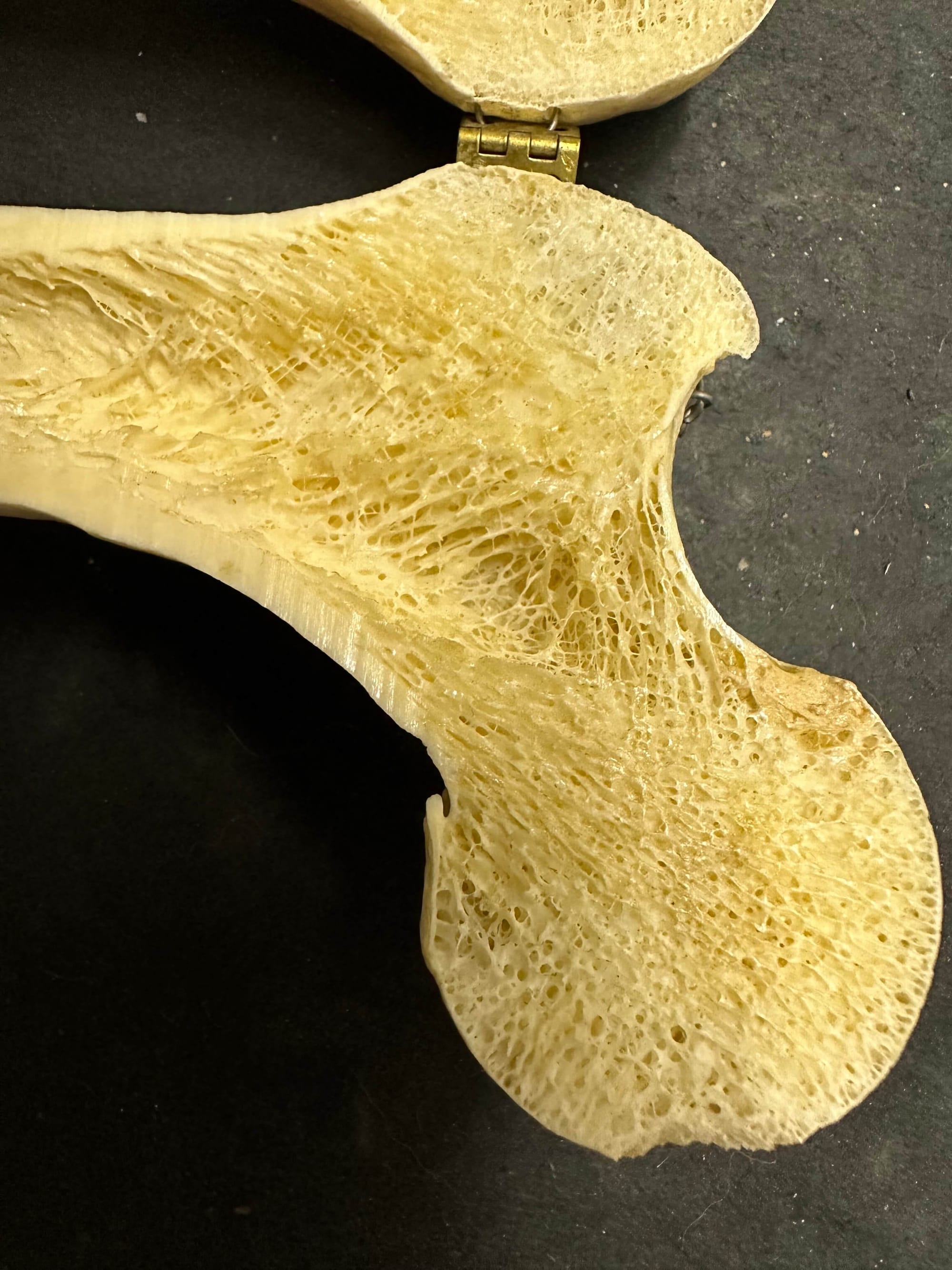 Yeah. So osteo: bone porosity: pores. So you, you actually develop holes in your bone mostly on the inside. You wouldn't see it from the outside. You might notice somewhat a little bit of a pitter, but I don't think much of that. It's still going look smooth on the outside, but the inside of the bone is going to be almost hollow and thin, you know, So it starts becoming eggshell like. And it's and it's super dangerous, not just because your bones are weaker, which is going to lower your activity rates, which is also going to lower all of your exercise and stuff like that. But it will get thin enough that the bones can break on their own. So they now think that, for example, one of the leading indicators of of of mortality in women is is hip fracture and that this might not happen from a fall but just walking along because if you think of the way the femoral head comes into the hip socket. Right, it makes a right angle turn. And if that isn't very, very thick bone and really, really strong, that right angle turn where the where the where the hip socket is coming in. The female head just breaks off.